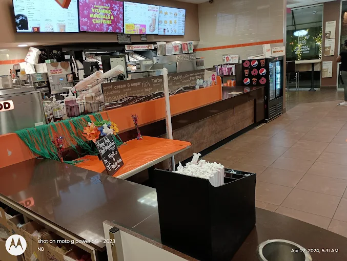 Inside, the atmosphere is casual and friendly — ideal for a quick stop on your commute or a relaxed moment with a latte. The menu offers everything from Dunkin’s classic hot and iced coffees to seasonal treats, breakfast sandwiches, bagels, and a wide variety of fresh donuts.